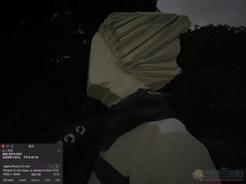 喔對了,雖然上面這個範例的 EV 值不同導致快門時間相同。我們回頭檢視這次的測試照片,可以發現相對於在更大感光元件+更新防震技術的 iPhone 12 Pro Max 上,選擇保持一樣的感度獲得更強大的畫質表現。