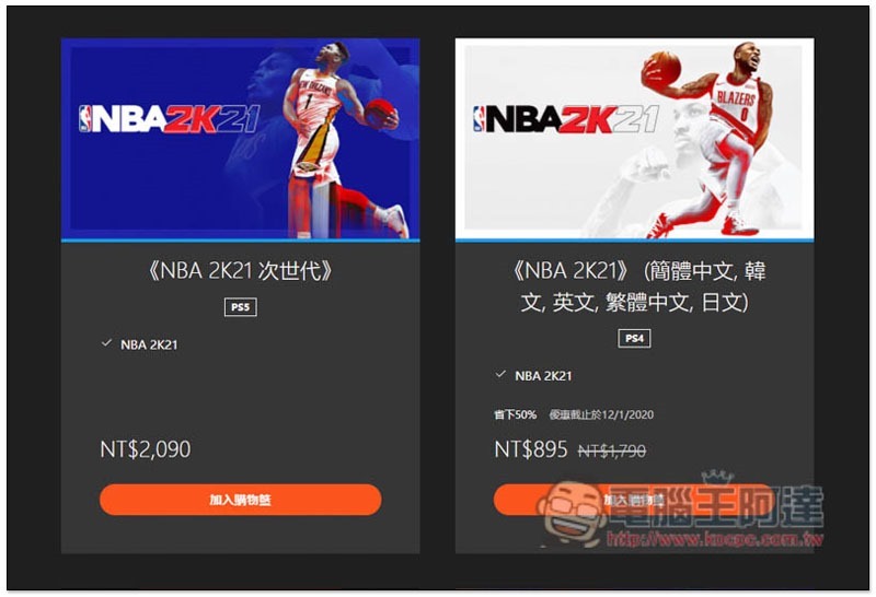 另外有一點要注意是,有些遊戲也有 PS5 版本,像 NBA 2K21 這款,不過只有 PS4 版半價,PS5 版還是原價,所以別買錯了: