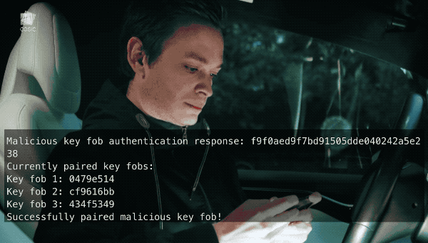 影片中可以看到,Wouters 特別用透明外殼展示的關鍵硬體 — 一台能跟手機溝通,與 Raspberry Pi、電池還有 eBay 購入的二手 Model X 車身控制模組(BCM)裝在一起的設備。透過它搭配偷看來的 VIN 號碼做為認證的後綴資訊,Wouters 就可以用來喚醒車主的 Key Fob、欺騙相關設備進行訊號的收發。