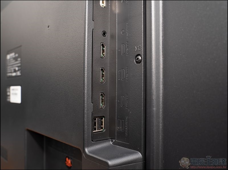 接下來看一下機身背面特寫,支援 VESA 規格壁掛孔,可直接安裝置壁掛架上: