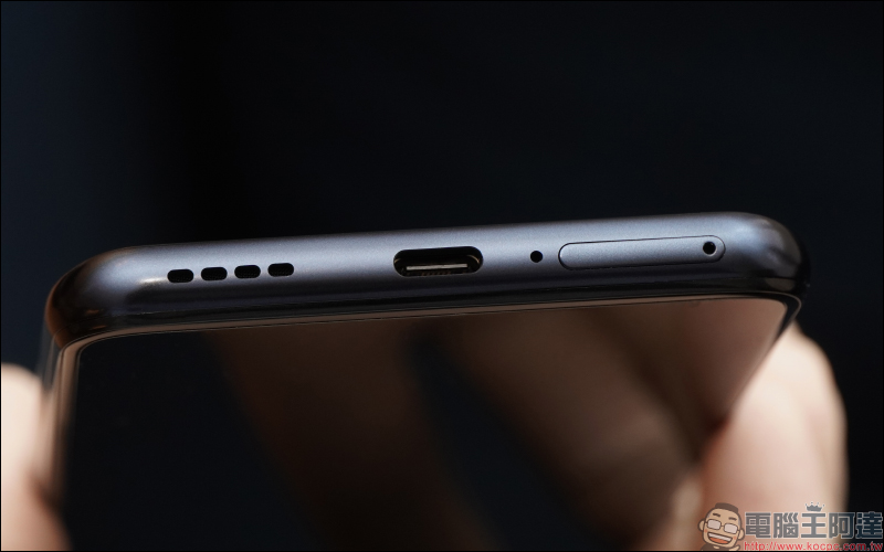 機身底部則有揚聲器、 Type-C 接口、麥克風收孔和 SIM 卡槽: