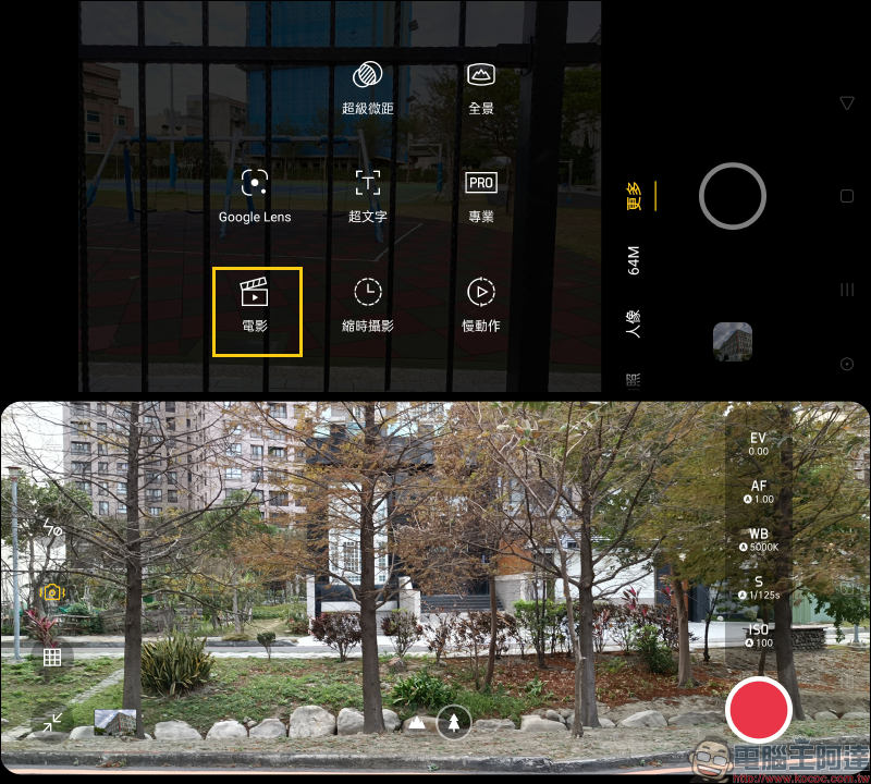 電影模式透過個人化的專業設定、並以 21:9 電影比例進行拍攝: