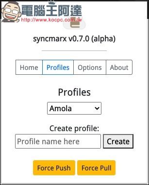 ▲Profile 頁有個 Force Push 跟 Force Pull 的功能,講白了就是強制上傳資料與強制下載資料,使用時都會跳出警告表示有資料毀損的風險。筆者認為,這個操作最好在已經匯出備份現有書籤後操作會安全一點。