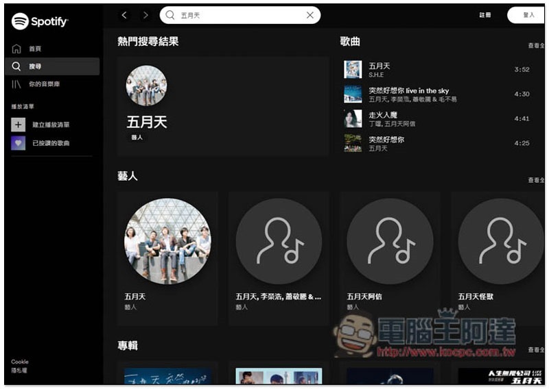 尋找你要下載的歌曲或歌手,我以五月天為例: