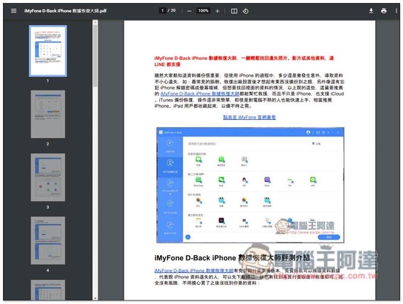 再次打開 PDF 檔就會變成這畫面,左側多了各頁數的檢視小圖,讓你可以快速查看與切換,這真的方便很多: