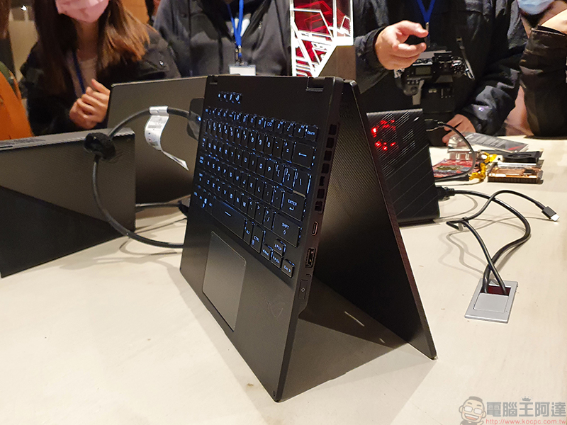 這兩款機型在鍵盤部分採用 Asus 自有光軸機械鍵盤,而玻璃觸控板部分也加大了 85%,可切換為獨立數字按鍵模式,另外在方向鍵部分也加大,讓大家按得更順手,連接埠主要配置於機身上側,外接各種裝置也不卡手。在這一代的螢幕佔比相較於去年更加提升,極窄邊框副與它 85% 的螢幕佔比,體型卻比去年的機型更小。硬體配備方面採用最新 AMD 處理器、Nvidia GrForce 獨立顯卡,特殊的靜音散熱設計以最低的噪音來維持系統的穩定,螢幕更新率最高可達 165Hz。配備 90Wr 電池,續航最高可達 12.7 小時,支援快速充電技術,從 0 充到 50% 電力僅需 30 分鐘,搭配隨附的 100W USB-C PD 充電器更是事半功倍。