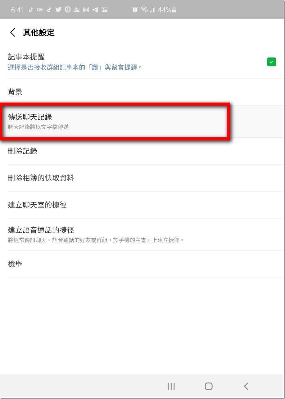 Step 03:在其他設定中,你可以找到「傳送聊天紀錄」,點選他。
