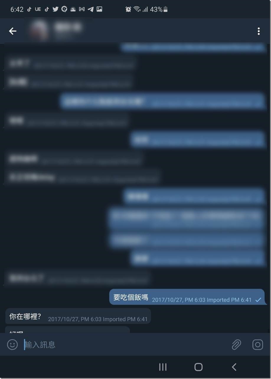 Step 08:匯入完成後的對話紀錄,底下都會有當時的聊天時間。但要注意的是,這些匯入的對話紀錄,會以「最新訊息」的方式,呈現在訊息視窗最前面,所以建議重視訊息時間排序的人,使用前務必三思,免得造成LINE的就對話紀錄,洗掉你目前跟朋友TG的對話紀錄。