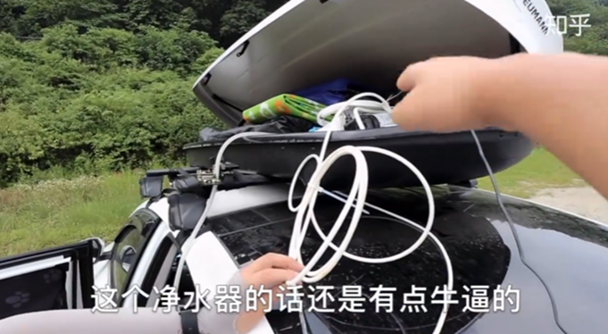 而這麼多塊大尺寸的太陽能板,當然不可能塞車內,因此他在車頂上設置一個專屬收納空間: