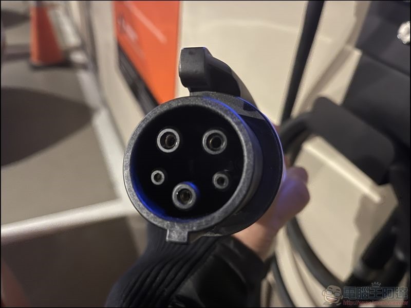 接著先拔槍,noodoe EV 採用 J1772 充電接頭,所以要自己裝上特斯拉的轉接頭: