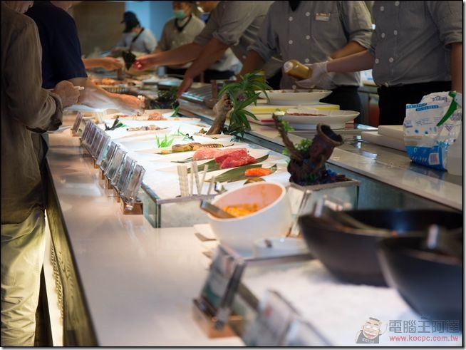 接下來目光轉移到現作和風壽司區,豐富的生魚片、壽司,喜歡日式料理的一定要來看看;