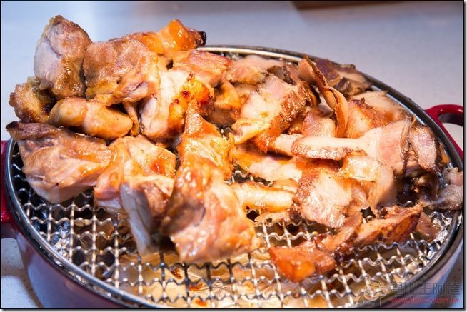 像阿達這種無肉不歡的人來說,我最愛饗食天堂的就是那吃也吃不完的各式肉品,像這個每天現殺的「霸王櫻桃鴨」是採用嚴選三公斤以上霸王級櫻桃鴨油脂豐富、肉質細嫩,鴨肥肉嫩皮脆多汁,外皮烤的脆脆的,切片擺盤來吃,超 JUICE 呀:
