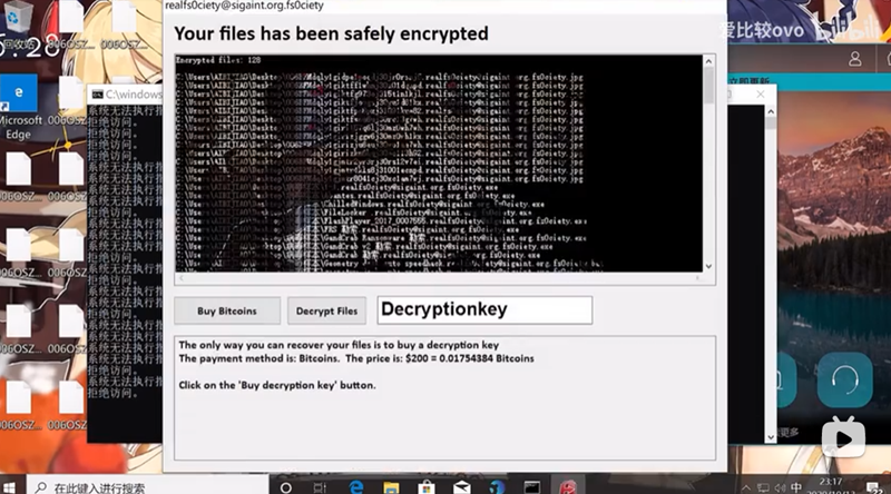 再來是最後的 ESET NOD32 則宣告失敗,有跳出中毒的視窗,桌面的紳士圖片也全被加密:
