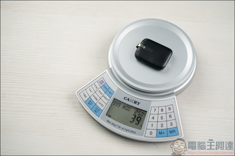 TAU 行動電源只有 39g 的輕量化重量以及寬 4.4 *高 6 *厚 1.2cm的迷你體積,是一個你放在身上也沒什麼感覺的重量: