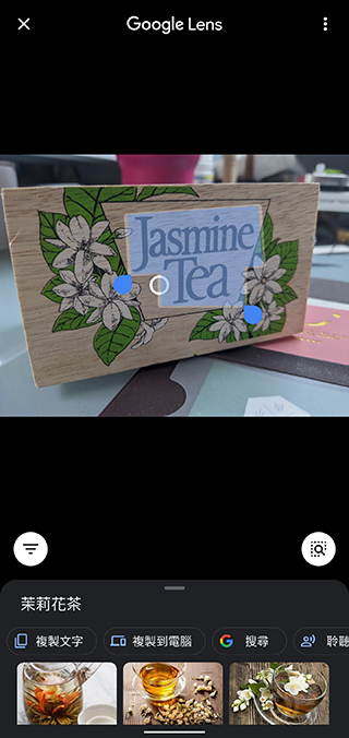 在瀏覽 Google 相簿時,只需往上滑動就能顯示更多圖片資訊,這是過去就已經有的功能,但現在你可以直接在下方取用 Google 智慧鏡頭所擁有的各種功能。當 Google 智慧鏡頭在你的照片中發現文字,在下方你可以看到另一個智慧鏡頭專屬的框框,點選後它會如過去一般以藍色的突出標示來凸顯它,然後你可以選擇翻譯、複製、朗讀,甚至能夠直接複製到電腦上登入同一個 Google 帳號的瀏覽器中,操作一氣呵成,不須另外再開啟智慧鏡頭應用。