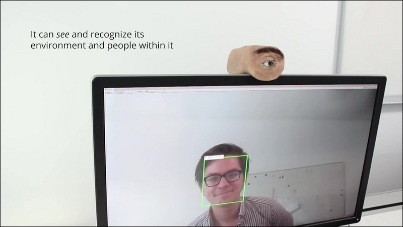 武漢肺炎,或稱 COVID-19 疫情爆發數月,打亂世界上許多人的生活形式。為了活下去,必須接受各國政府的限制住居令,不能參與會有多人群聚的活動。有些上班族因此過起了漫長的在家工作生活。必須天天對著網路攝影機進行視訊會議。這樣的隔離生活對很多追求社交活動的人們感到非常煩悶,隔著機器見到視訊另一方的客戶或上司也讓人十分疲倦。如果這時後網路攝影機也能有點人的溫度,會不會讓人更好過些呢?德國薩爾大學的研究者 MarcTeyssier 顯然對這個話題很有興趣,他想到一個可以做為人機互動研究的點子,竟是讓一個網路攝影機,擁有擬人化的眼珠與皮膚,甚至眼珠還會透過 AI 控制轉動、眨眼。以機器來說,模仿的程度相當逼真: