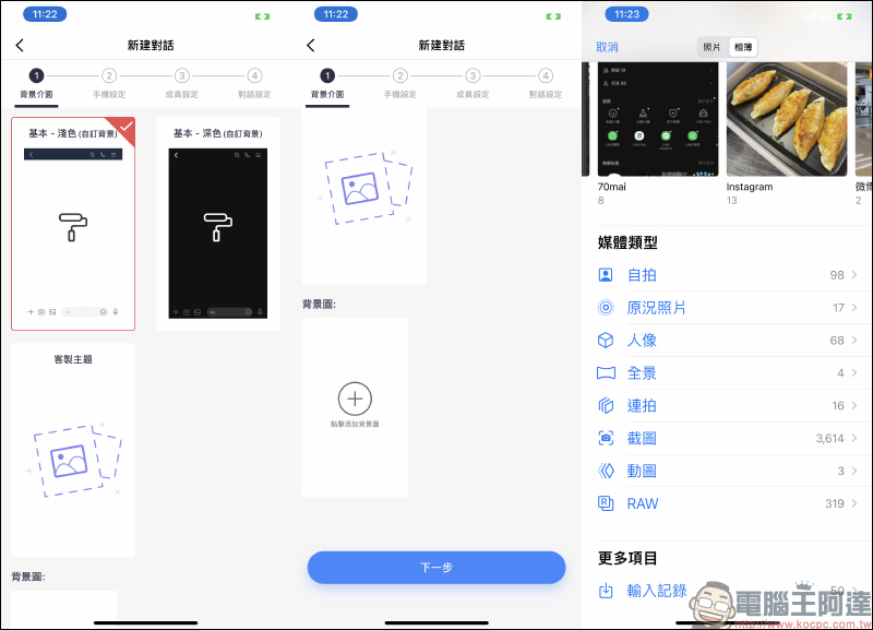 除了基本的淺色和深色背景介面,用戶更也能套用相簿中的圖片作為 LINE 對話模擬的聊天室背景。