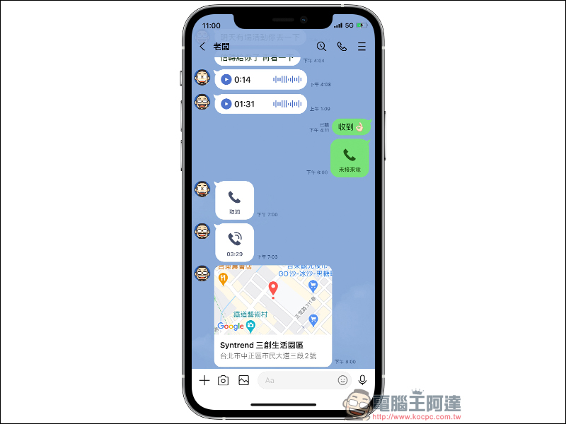 除了取消通話、無回應或未接來電這些沒有順利完成通話的語音通話,若想模擬有成功接通的語音通話,還能自訂通話時長讓整個 LINE 聊天串看起來相當真實。