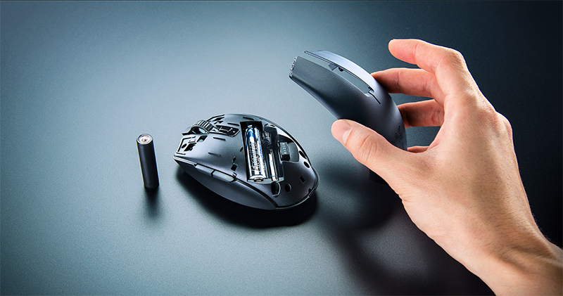 Razer Orochi V2 可相容於 AA 與 AAA 電池,除可是個人喜好的配重來選擇使用的電池種類,當然使用更大的 AA 電池自然也能獲得更長的續航時間。具體來說,在使用標準 AA 電池的情況下以藍牙進行連接,最長可以獲得 950 小時的續航力,不過這還是必須視個人使用情況而不同,由於它支援 Razer 的 HyperSpeed 無線通訊,如果選用這項連接方式自然也會消耗較多的電力。