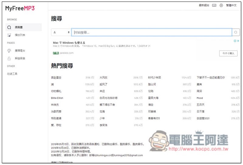 這個 MyFreeMP3 網站非常強大,超多免費音樂都能下載,連無損格式都有: