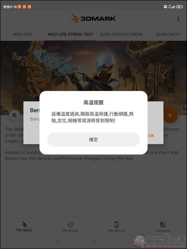 3D MARK 成績如下,Wild Life 的20迴圈壓力測試因為過熱中斷: