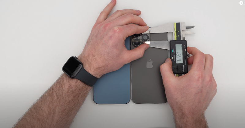 厚度部分測出來 iPhone 13 Pro Max 有稍微胖一點點,差距非常小,因此視覺上看不太出來: