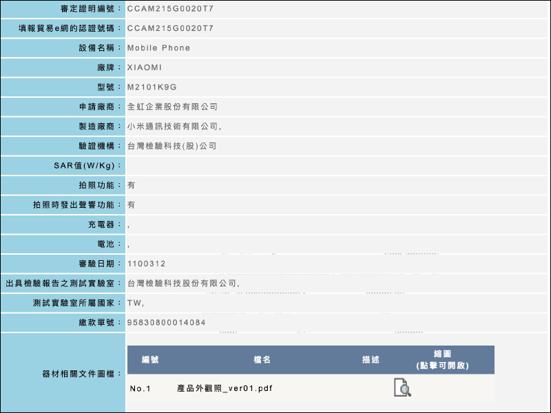 其實小米 11 Lite 5G 早在 3 月中旬就即以「M2101K9G」型號取得 NCC 認證,申請單位為遠傳電信子公司全虹企業,在 NCC 認證資料的「產品外觀照」附件也已經揭露了小米 11 Lite 5G 產品外觀。