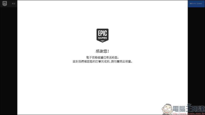 接下來系統會發送收據到玩家的電子信箱,當進入此畫面時暫時先不要關閉視窗: