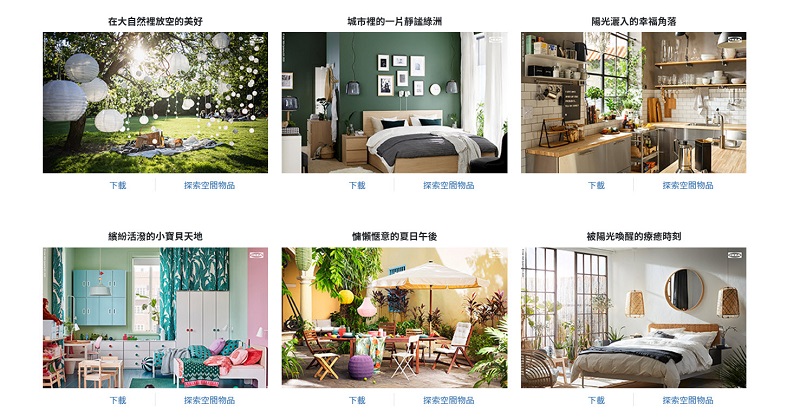 如果這些「IKEA虛擬美圖背景」用久了想要乾脆讓自己的房間也布置成這樣,也可以點「探索空間物品」,快速線上選購相關的布置商品。