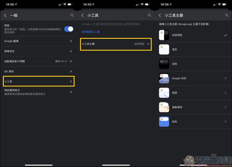 iOS 主畫面 Google 小工具推出全新主題樣式 :抽象藝術、旅遊、Google 地球及純色等選項(設定教學)