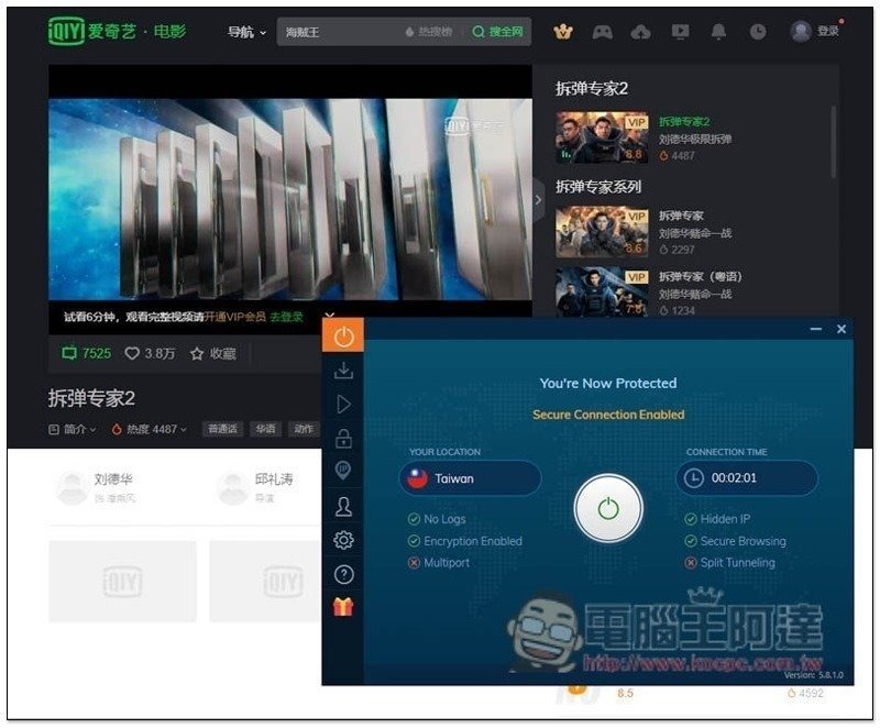 Ivacy 是少數市面上可以破解中國影音平台的 VPN,而且價格又便宜。只要連接 “台灣伺服器” 後,就可以解除中國 QQ 音樂、百度音樂、酷狗音樂、優酷、B 站(Bilibili)、中國愛奇藝的版權限制。