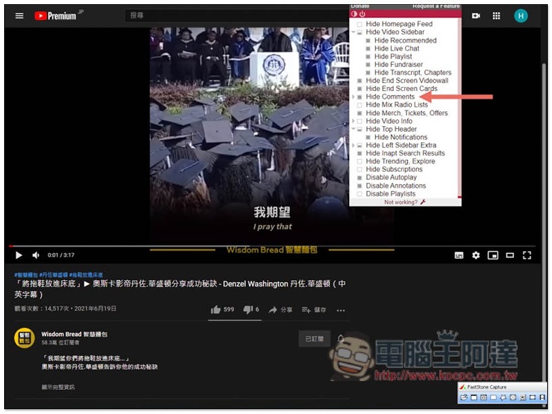 我把 Hide Comments 啟用之後,下方影片留言就不見了: