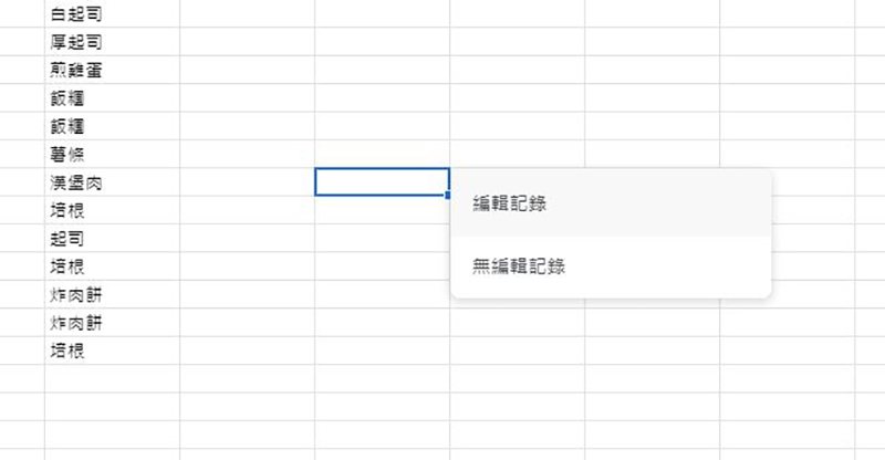 - 如果儲存格是空的並且未曾進行修改,彈出視窗將會顯示「無編輯記錄」。