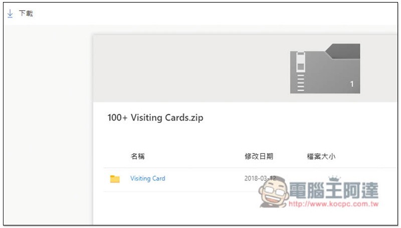我以名片為例,按 Get 會進入下載頁面,按左上方的下載功能:
