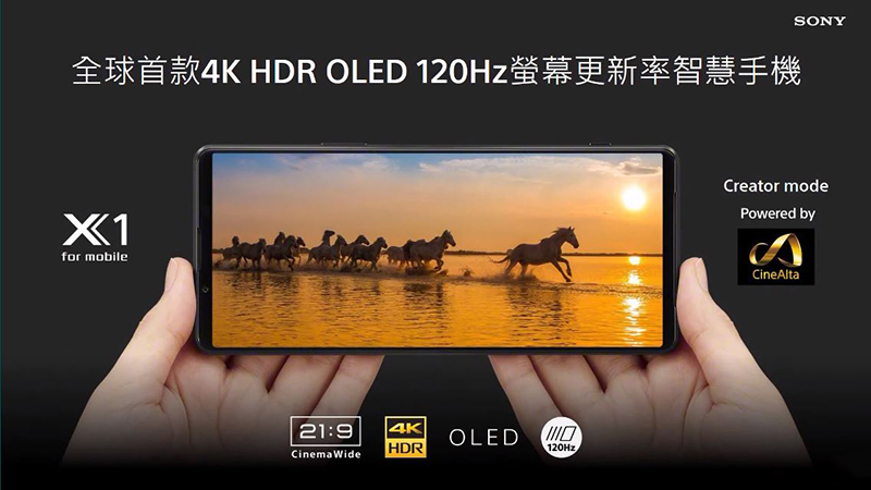 Xperia 1 III 是全球首款搭載 120Hz 更新率 4K HDR OLED 的智慧型手機,擁有 6.5 吋 21:9 顯示比例螢幕,以源自於 BRAVIA 電視技術的 X1 for mobile 影像處理技術,達成 HDR 畫質提升能力,為影音串流帶來更棒的對比、色彩及清晰度;源自 CineAlta 的「導演模式」透過專業校準的 OLED 螢幕具備精確白平衡,搭配好萊塢指標片廠普遍採用的 Sony 專業 Master Monitor 專業螢幕的色彩重現技術為基礎,使螢幕影像內容呈現導演創作時的電影原色。