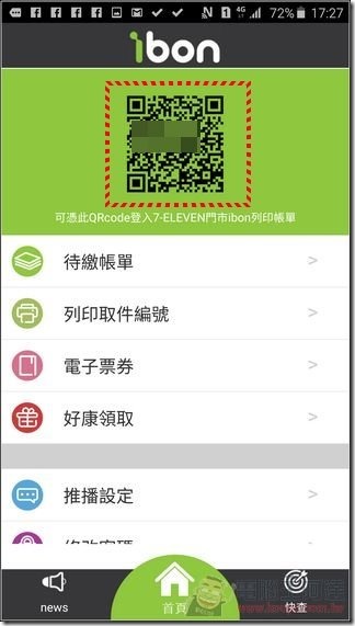 之後只要開啟 APP 主畫面的「我的ibon」讓機台掃描上面的 QR-Code: