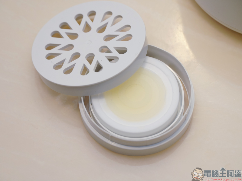 使用方式也超簡單,首先將蓋子卸下後就能看到內部擺放香薰片的儲存盒以及電池槽。