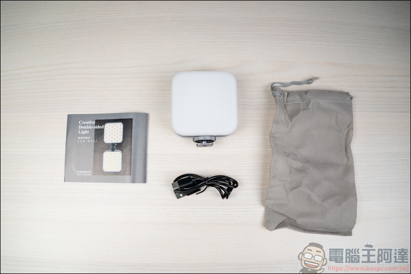 MAMEN LED-D01的內容物:LED-D01、Type-C充電線、收納袋、說明書
