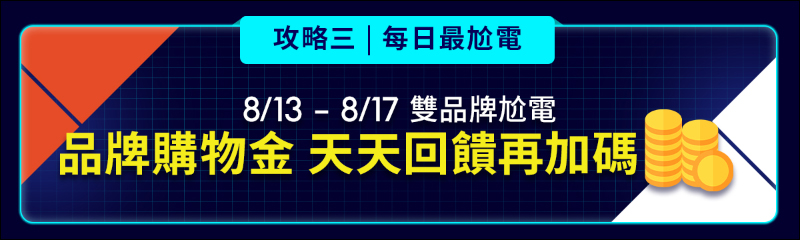 攻略三|每日最尬電,品牌購物金 天天回饋再加碼(8/13 – 8/17)