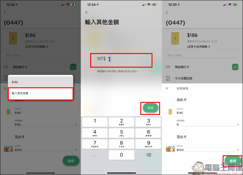 將其他隨行卡的餘額轉過去後,系統也會立即更新餘額。