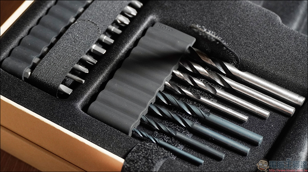 打開後,映入眼簾的是整齊排列的電動起子與起子頭。