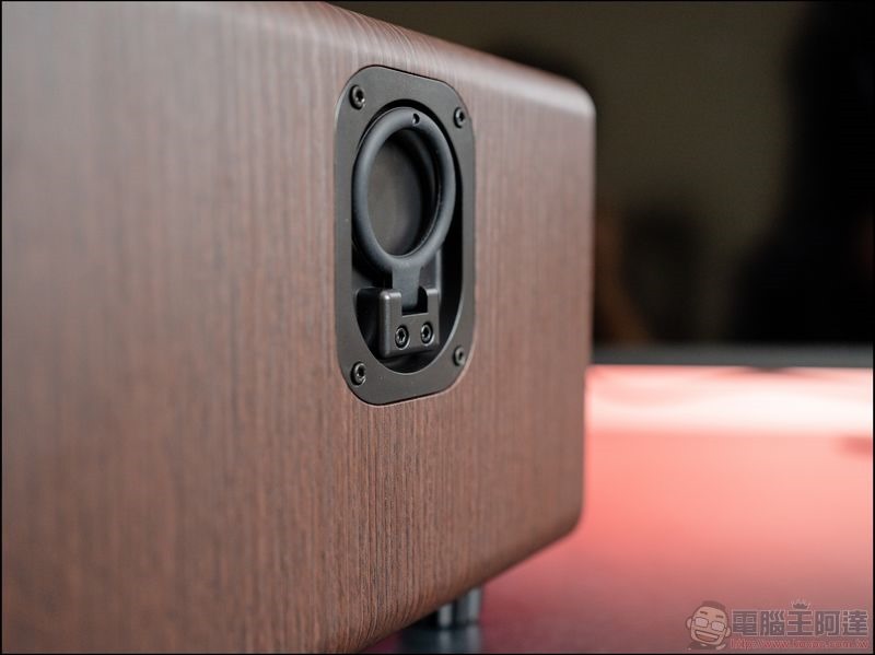 背後則是配置了一顆6.5英吋的40W重低音喇叭,皇馬 RM-K222 喇叭本身採用木質材質打造箱體,共振的效果不錯,就算拿來當作家庭劇院的喇叭也沒什麼問題: