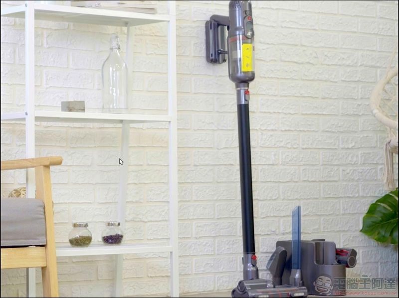 現在的無線吸塵器大部分廠商都送不少實用配件,但大都沒考慮到怎麼收納的問題,小狗T12 則貼心附贈了一組具備收納所有吸頭配件且同時可以為吸塵器主機充電的底座,相當好用: