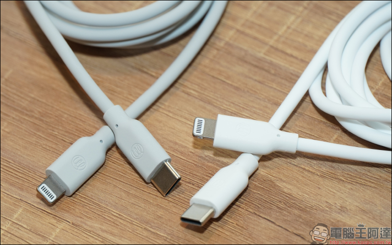 無論是 USB-C to Lightning 或 USB-C to C 的 PD 快充線,都貼心附上皮革製的束線帶。線材部分外觀採用 100% 醫療級親膚液態矽膠包覆,算是市面上相當罕見採用這類材質的線材。除了更柔軟、好持握的特性,也更不容易纏繞打結的狀況,線材也通過超過 3,000 次以上的抗彎折測試,耐用度也更放心。此外,線頭處採用獨家專模研發、符合人體工學設計,方便插拔使用。