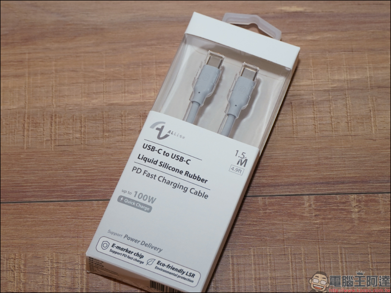 同時也有 USB-C to C 的 PD 快充線,支持最高 100W 輸出。