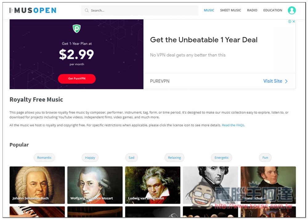 MUSOPEN 為非營利的免費音樂網站,提供超過 100,000 首古典音樂資源下載,而喜歡古典樂的朋友,這網站還內建廣播功能,讓你可以線上聽。