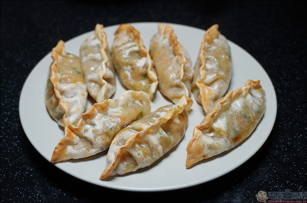 一般加熱通常是利用平底鍋加油去做成蔬菜煎餃,或是用蒸的方式做成蔬菜蒸餃,不過筆者也嘗試利用小米智慧氣炸鍋 3.5L 來加熱它,口味也意外不錯。小米智慧氣炸鍋 3.5L 設定 180°C 加熱 10~12 分鐘,再以200°C 加熱 3 分鐘就大功告成。如果想讓餃皮能呈現更香脆,可先在表面噴點油再進行加熱,不過筆者這次是未加油的狀態下直接以上述的設定加熱這款蔬菜粉絲餃。