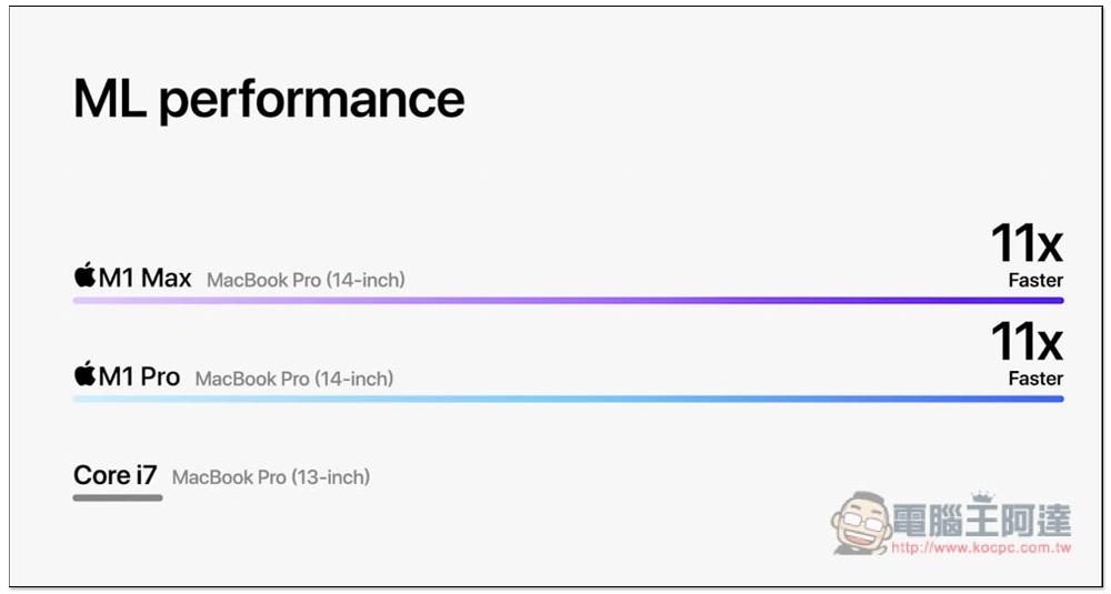 GPU 效能 M1 Max 快 13 倍,M1 Pro 快 9 倍: