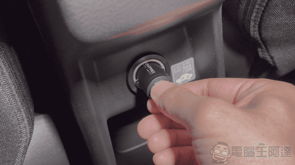 在汽車後排座位的點煙器裝上 GT-PD30MINI,更讓人覺得這樣無突起的高度整合感給人彷彿原廠內建 USB-C 充電器一樣的高級感: