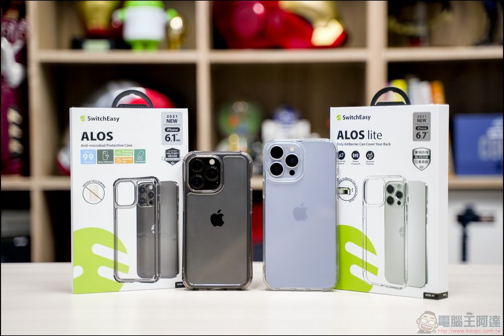 首先來介紹 SwitchEasy 魚骨牌的 ALOS 系列,ALOS 系列手機殼共有兩個品項,一個是 ALOS 永不發黃抗菌殼、另一個是 ALOS lite 晶亮透明殼: